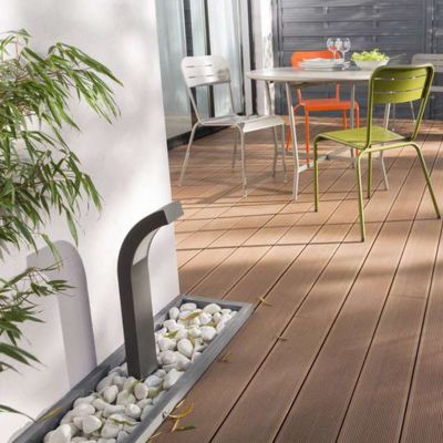 lame de terrasse composite aze brun l 290 x l 14 cm castorama