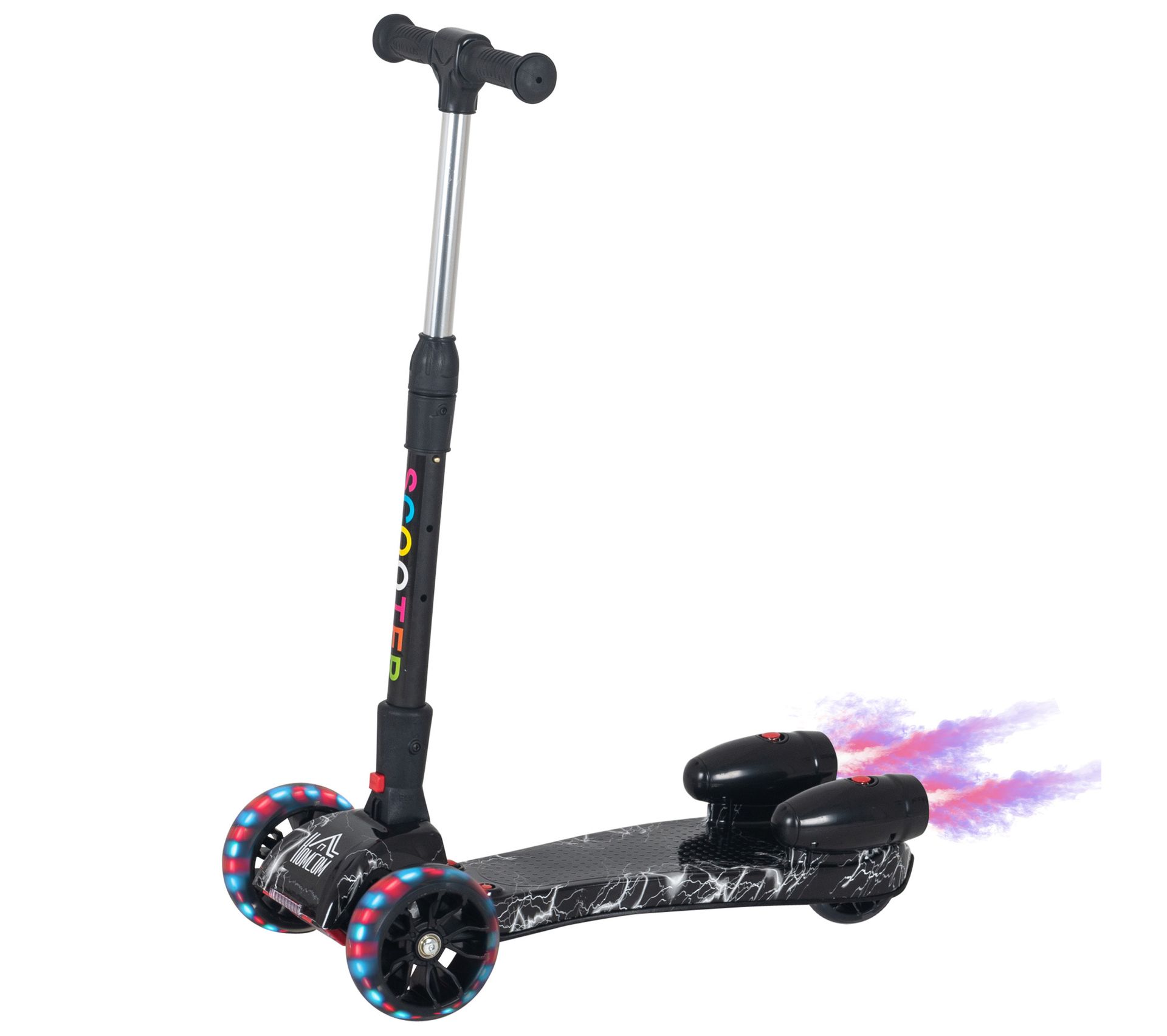 trottinette pliable 3 roues pour enfant roues lumineuses pulverisation arriere d eau fonction musicale noir dim 61l x 26l x 63 81h cm trottinette et vehicule d exterieur jeux d exterieur et de jardin