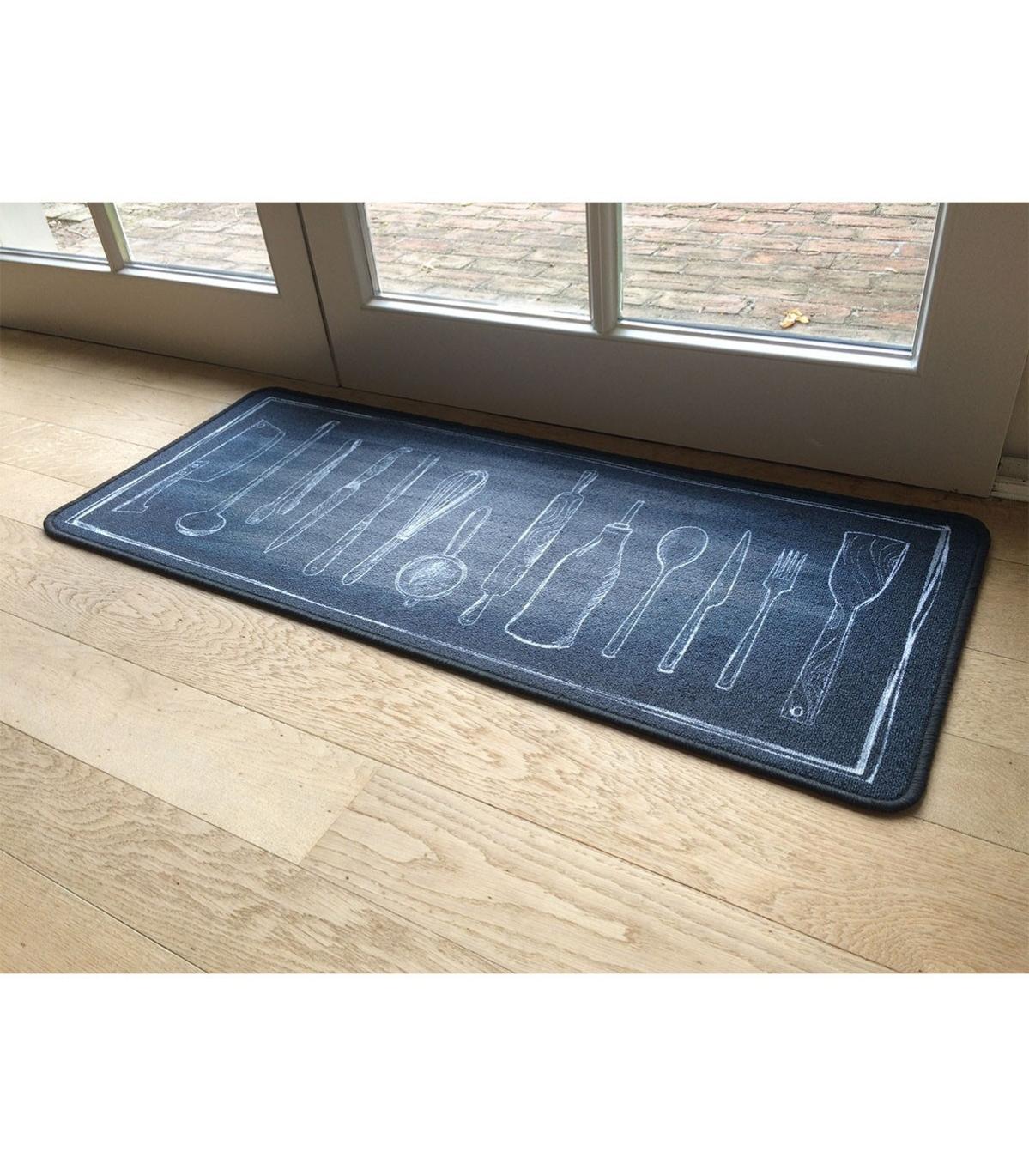 tapis de cuisine noir motif couverts leroy merlin