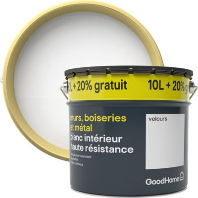 peinture murs boiseries et metal goodhome haute resistance blanc velours 10l 20 offert castorama