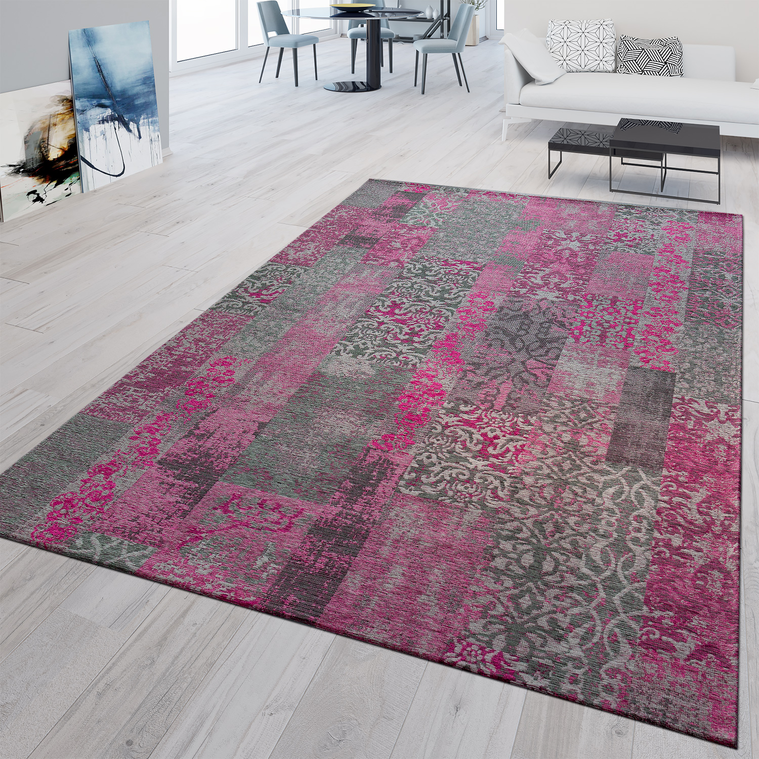 tapis poils ras moderne pour salon motif patchwork classique rose gris ebay
