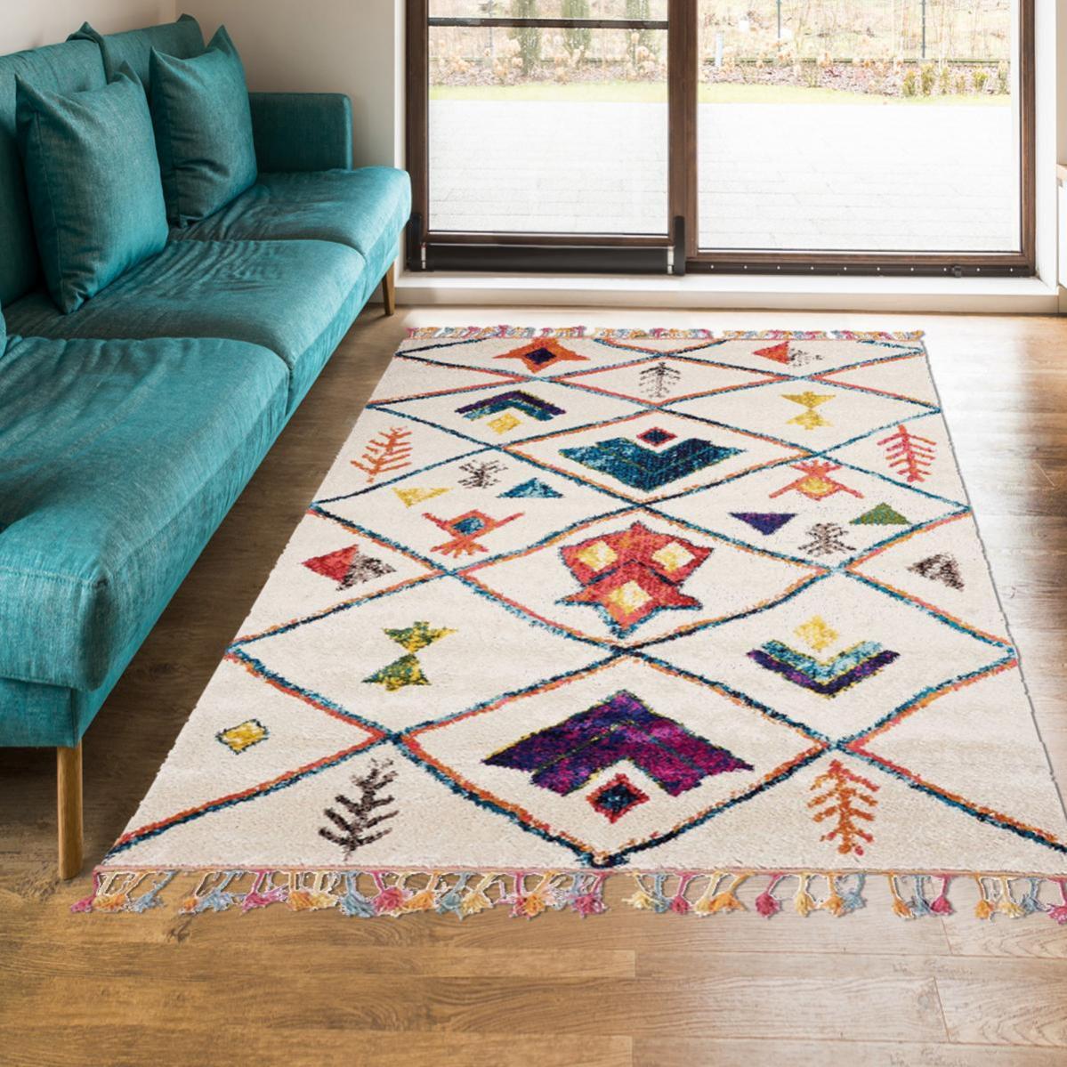 tapis style berbere 160x160 carre cm carre berber tribal mk 03 blanc chambre adapte au chauffage par le sol leroy merlin