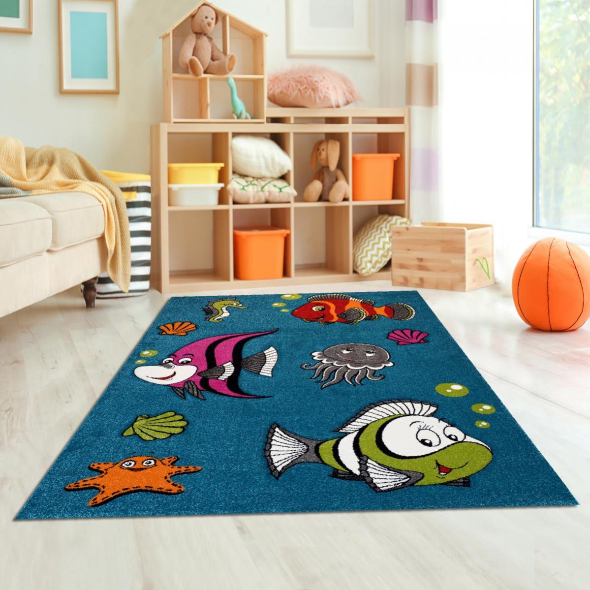 tapis enfant 160x230 cm rectangulaire poisson dans l eau orange chambre adapte au chauffage par le sol leroy merlin
