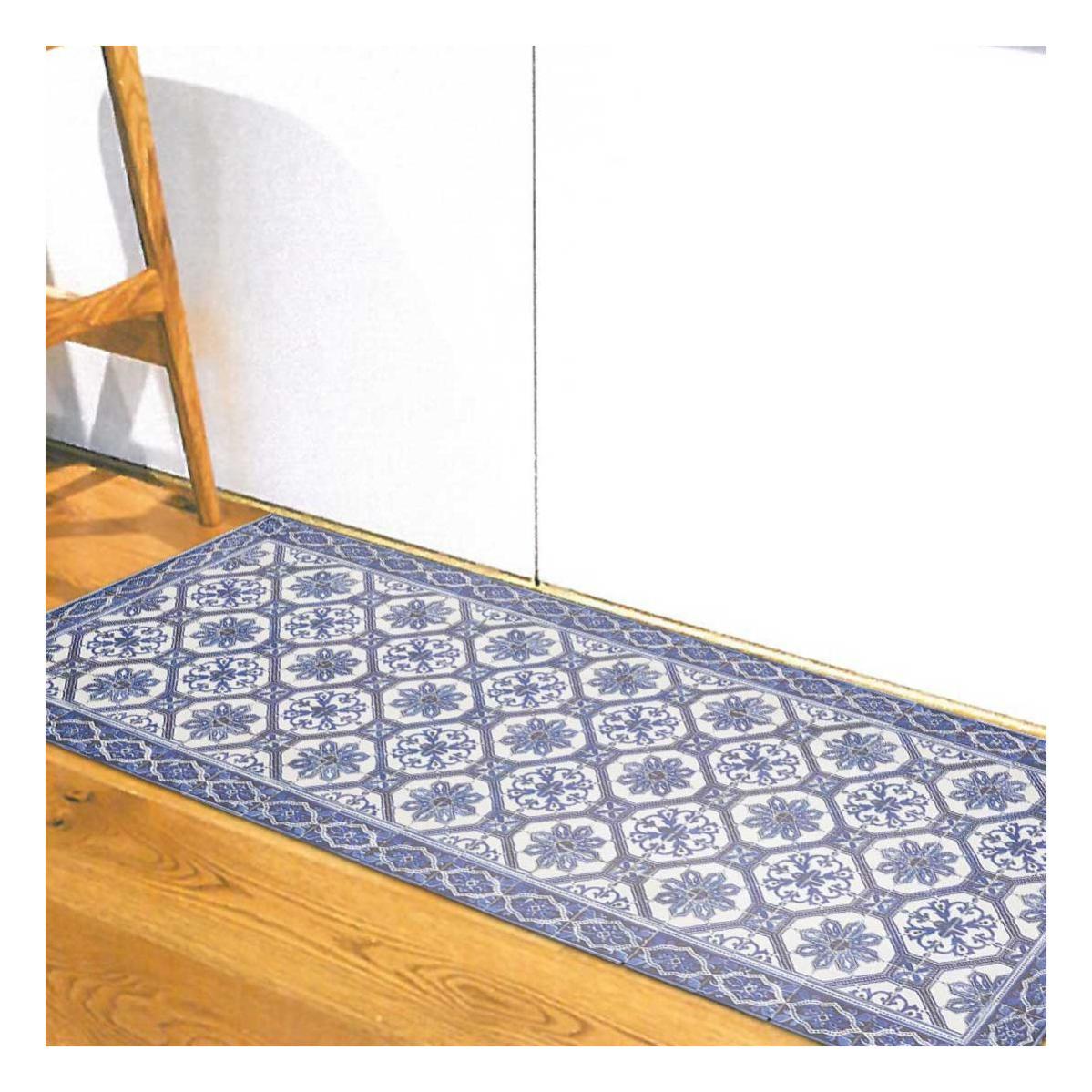 tapis de cuisine 150x200 cm rectangulaire vinyle faro bleu cuisine adapte au chauffage par le sol leroy merlin