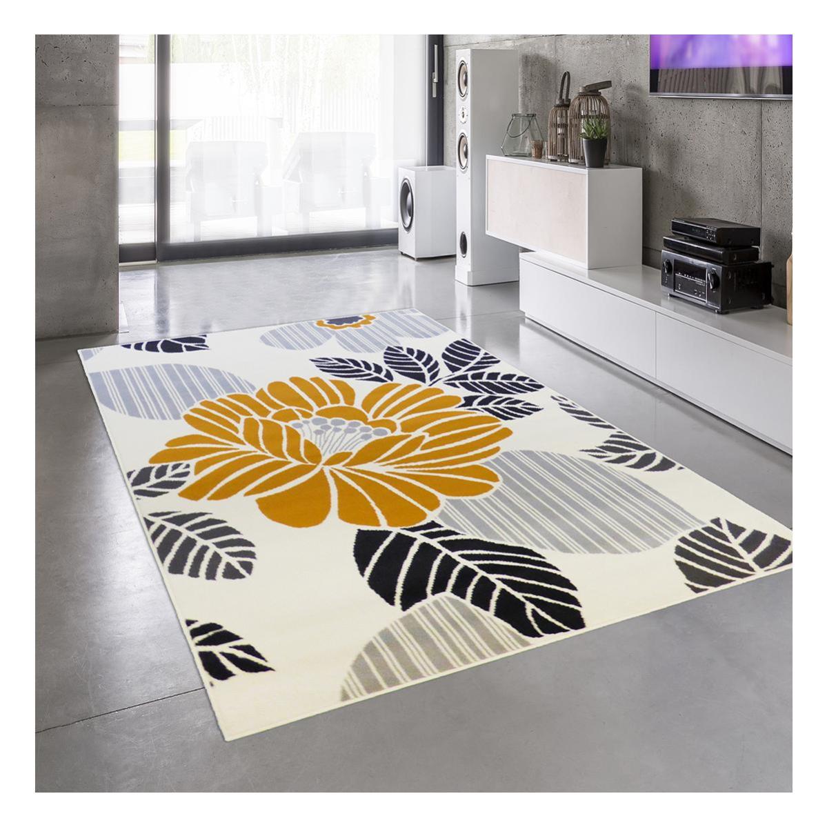 tapis design et moderne 160x225 cm rectangulaire yellowflo ecru salon adapte au chauffage par le sol leroy merlin