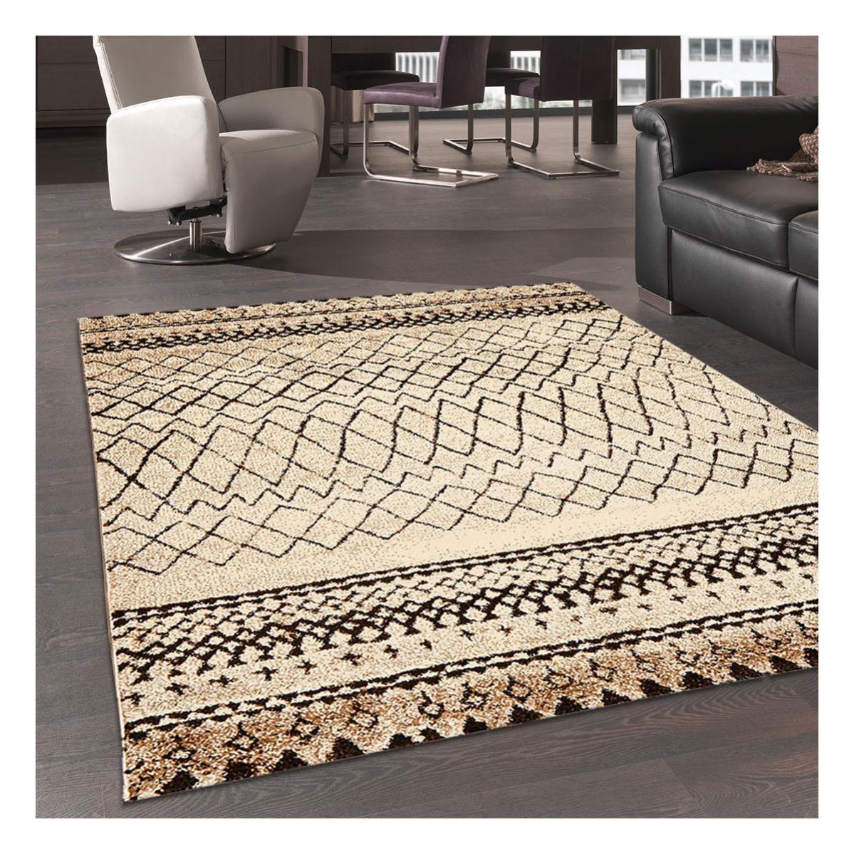 tapis design et moderne 120x170 cm rectangulaire vt losangali beige salon viscose leroy merlin