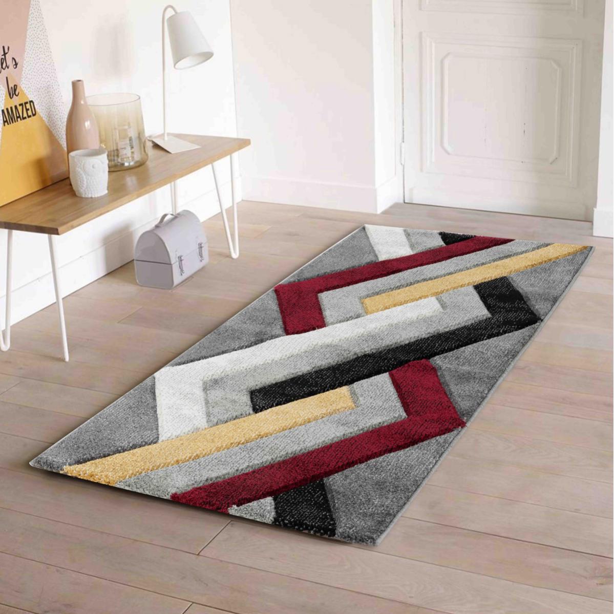 tapis a impressions segmentees jaunes blanc 80 x 150 cm polypropylene leroy merlin