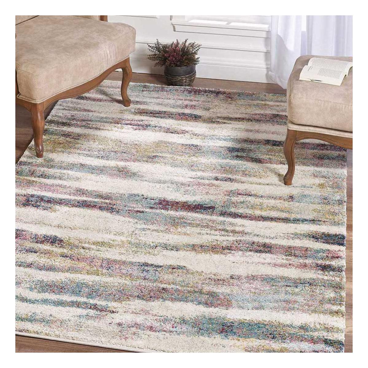 tapis design et moderne 120x170 cm rectangulaire kbl lagon multicolore salon adapte au chauffage par le sol leroy merlin