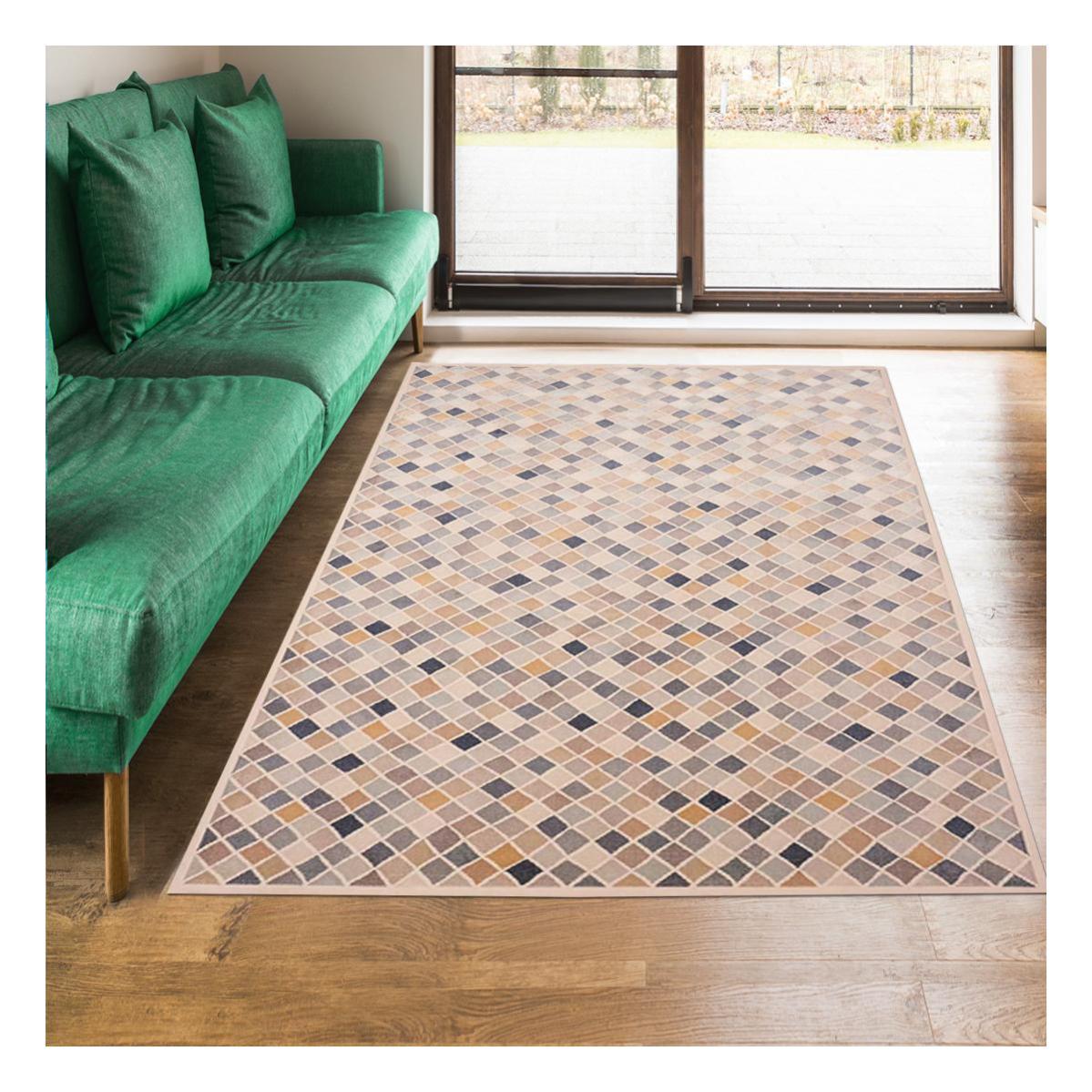 tapis design et moderne 140x200 cm rectangulaire bc savana patchwork beige salon adapte au chauffage par le sol leroy merlin
