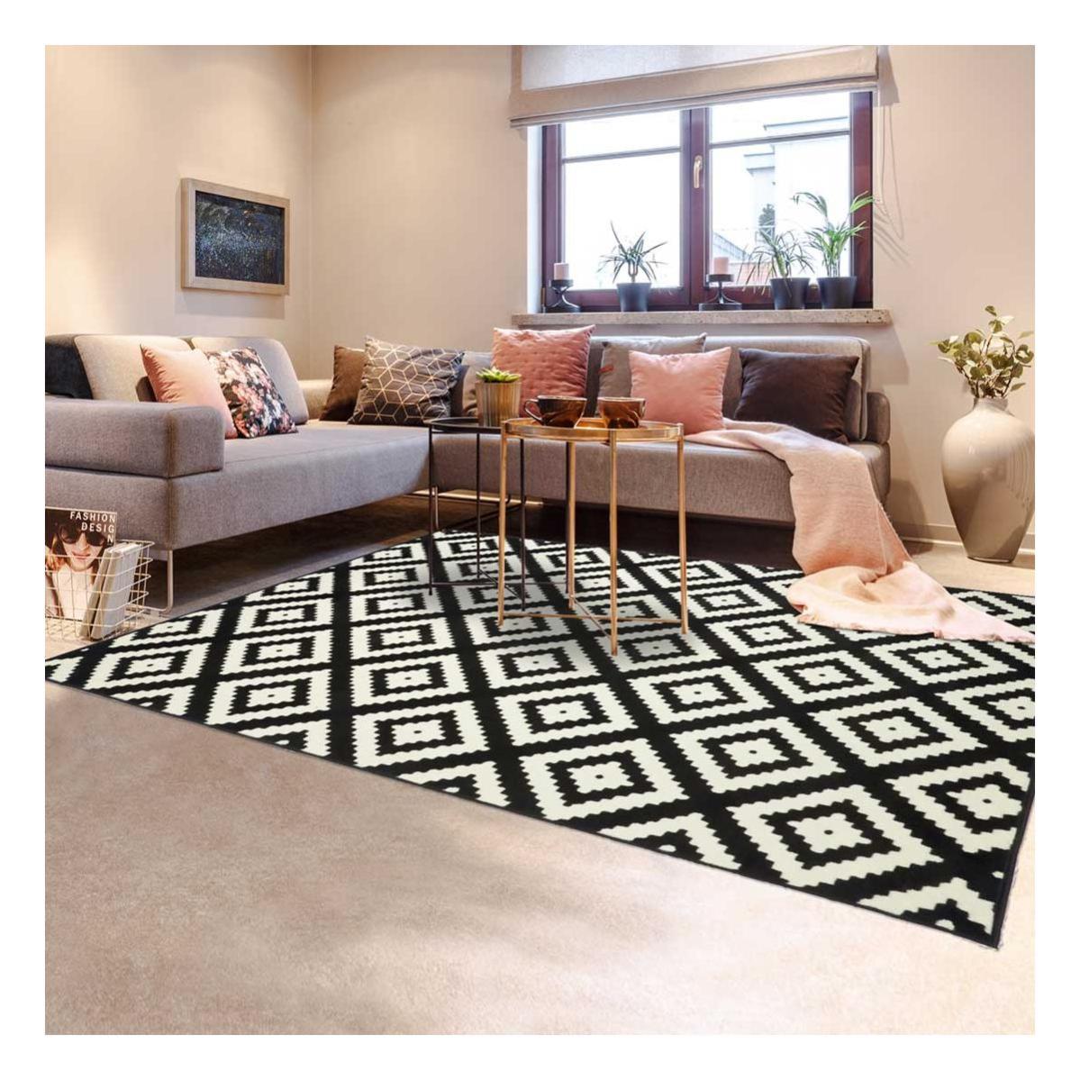 tapis design et moderne 120x170 cm rectangulaire plastique recycle recyclable 7 ll noir chambre adapte au chauffage par leroy merlin