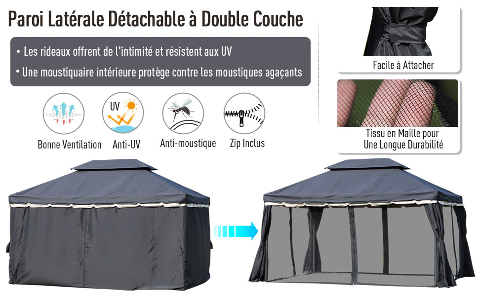 tonnelle barnum pavillon de jardin style colonial double toit toile moustiquaires et toiles amovibles 3 9l x 2 9l x 2 8h m chocolat outsunny pas cher a prix auchan