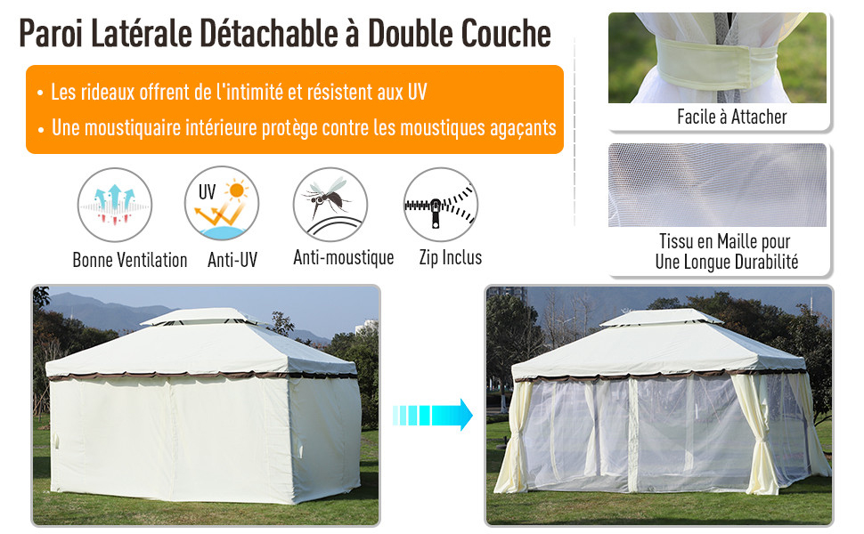outsunny tonnelle barnum pavillon de jardin style colonial double toit toile moustiquaires et toiles amovibles 3 9l x 2 9l x 2 8h m creme amazon fr jardin