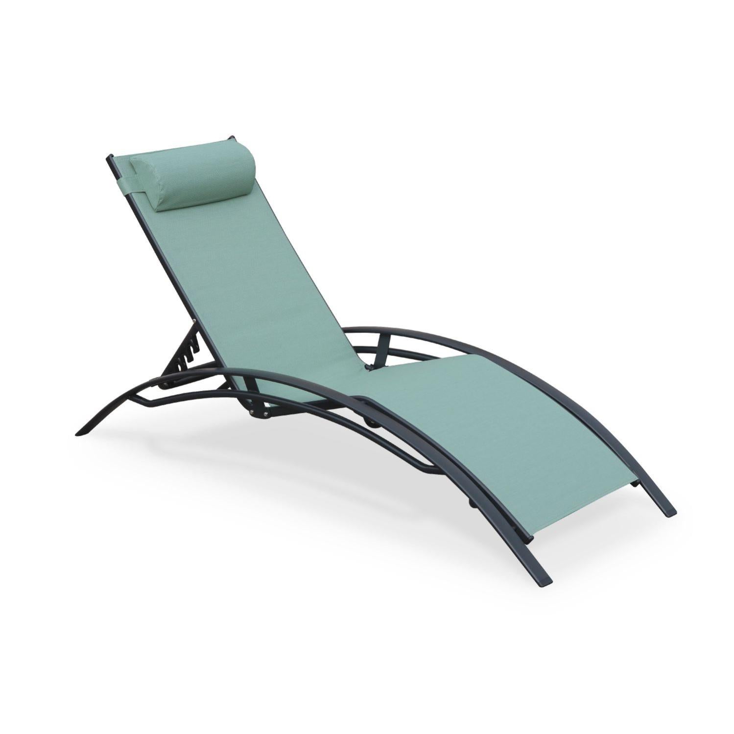 set of 2 elsa sun loungers in grey aluminium and sage green textilene adjustable loungers with wheels 8211 tx sun lounger outdoor recliner garden recliners