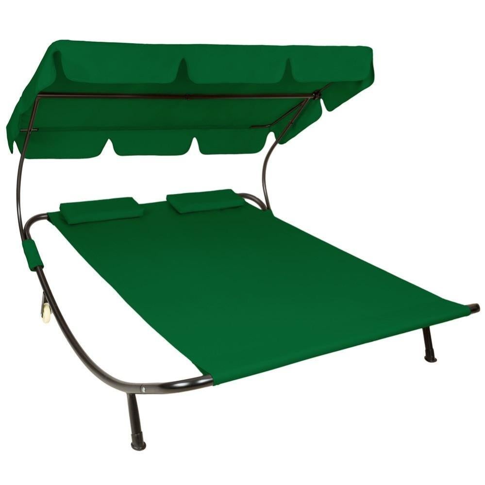 bain de soleil chaise longue transat avec pare soleil 2 places vert 2208009 leroy merlin
