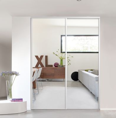 porte de placard coulissante miroir blanc form valla 92 2 x 245 6 cm castorama