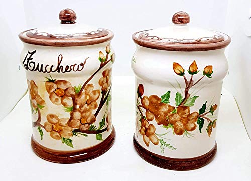 pair of opal glass jar apothecary or kitchen jar 18th century pattern green and blue pattern hermetic lid vintage made in italy pot en verre guirlande verte cuisine verre